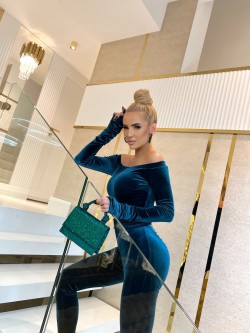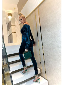 Szmaragdowy kombinezon z aksamitnego weluru.