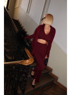 Create an elegant and extremely comfortable look with our deep burgundy set. Both the leggings and the sweater are made of soft, stretchy fabric with an embossed, textured diamond pattern that gives the whole outfit a luxurious, unique character.