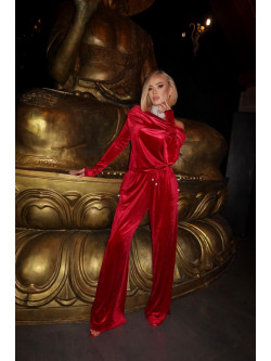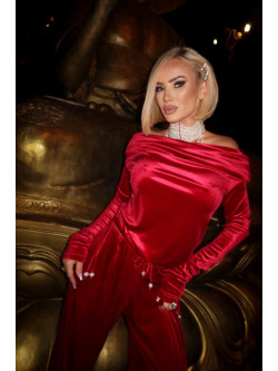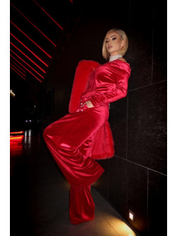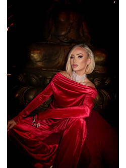 The RUBBY velour set is the essence of feminine sensuality and luxury encapsulated in a unique evening design. Made of soft, velvety velour, it drapes beautifully over the figure, shimmering delicately with every movement.