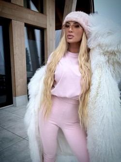 The blouse is made of an incredibly nice-to-touch and stretchy fabric in a powder pink shade. It has a slightly loose fit that adjusts at the bottom thanks to the sewn elastic band. The gathered detail is also present at the bottom of the sleeves. It features a logo element on the front in the center in the form of an embroidered diamond in the color of the fabric.