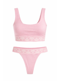 Szerokie ramiączka gwarantują stabilność i wygodę, a elastyczna taśma pod biustem z subtelnym motywem diamentów dodaje całości nowoczesnego, luksusowego charakteru. Gładkie wykończenie sprawia, że top świetnie sprawdzi się zarówno w stylizacjach sportowych, jak i casualowych.