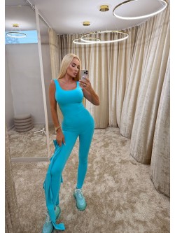 BREEZE JUMPSUIT - turkusowy kombinezon z matowej lycry z dekoltem na plecach