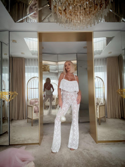 Zjawiskowy kombinezon wykonany z delikatnej, efektownej koronki to propozycja dla kobiet, które kochają kobiece i wyjątkowe stylizacje. Dopasowany fason pięknie podkreśla sylwetkę, a rozszerzane nogawki optycznie wydłużają nogi i nadają całości eleganckiego charakteru.