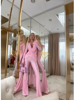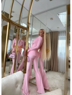 Model idealnie komponuje się ze spodniami PINK PAIGE TROUSERS.
