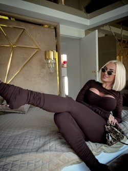 Legginsy o dopasowanym kroju wykonane z elastycznej wiskozy w czekoladowym odcieniu. Model z wysokim stanem z wszytą elastyczna gumą w talii, która się dopasowuje. Z tyłu na wysokości bioder posiada marszczenia, które podkreślają sylwetkę. Element marszczenia znajduje się także na nogawkach w dolnej części, które dodatkowo są wydłużone i posiadają dziurkę na szpilkę - dzięki temu można taki komplet wystylizować w eleganckiej wersji ze szpilkami.