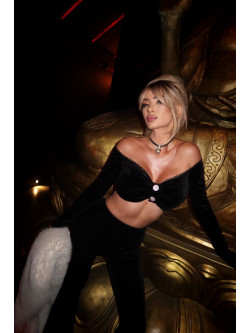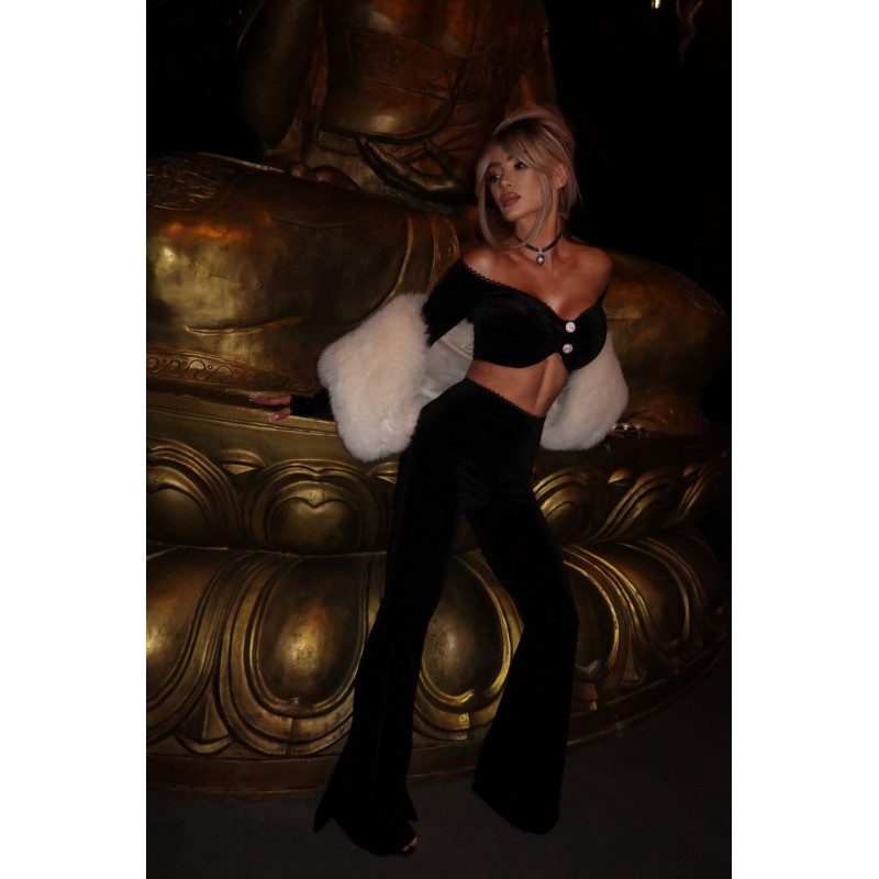 Spodnie można połączyć w kompletny zestaw z bluzką CAMILLA oraz shortami CAMILLA z tego samego, welurowego modelu, tworząc spektakularny total look Just Unique.