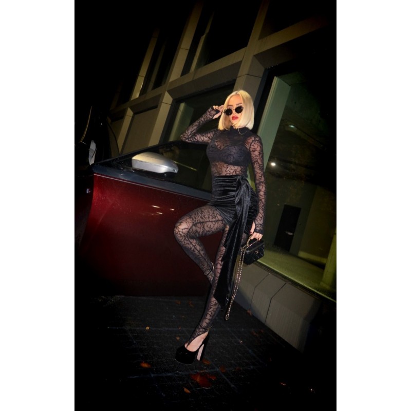 Spódniczka doskonale komponuje się z koronkowymi legginsami oraz bluzką – tworząc zmysłowy, wieczorowy look, który przyciąga uwagę. Idealna na imprezy, randki czy wyjątkowe wyjścia, gdzie liczy się styl i odwaga.