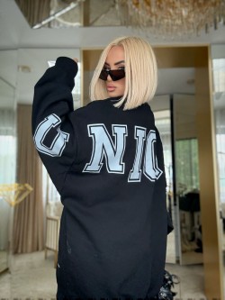 Czarna bluza Oversize’owa JUST UNIQUE to must-have w garderobie każdej kobiety, która ceni sobie modę z charakterem. Luźny, oversize’owy fason gwarantuje komfort noszenia, a kontrastowe, duże litery na przodzie i tyle nadają całości wyrazistego, streetwearowego stylu.