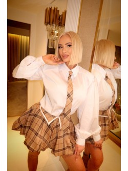 Dodaj swojej stylizacji odrobinę klasy i charakteru dzięki naszemu damskiemu krawatowi w ponadczasową beżową kratę. Ten wyjątkowy dodatek wprowadza do outfitu nutę prestiżowego, akademickiego stylu, jednocześnie zachowując kobiecy szyk i nowoczesność.