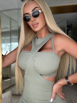 Sukienka o długości maxi wykonana z elastycznej i niezwykle komfortowej prążkowanej tkaniny w kolorze khaki. Sukienka ma dopasowany fason na ramiączka podkreślający figurę z unikatowym wykończeniem w górnej części z wycięciami. Z tyłu w dolnej części posiada rozcięcie, dające komfort w użytkowaniu.