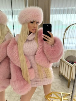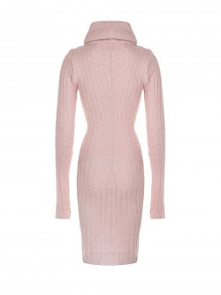 Limitowana dzianinowa sukienka w pudrowym różu z golfem.