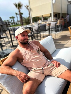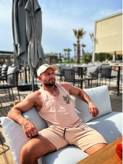 Męski bawełniany tank top z naszywkami.