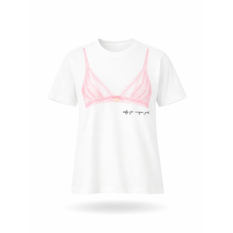 Stylowy, wyrazisty i pełen kobiecej energii – biały T-shirt oversize z modnym nadrukiem inspirowanym koronkową bielizną to propozycja dla kobiet, które lubią łączyć komfort z odważnym designem. Grafika w odcieniu różu oraz subtelny napis „only for unique girls” nadają całości wyjątkowego, fashion charakteru.